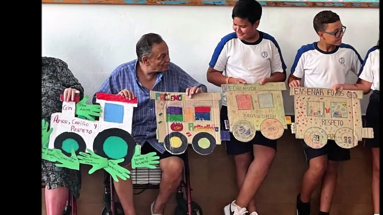 Residentes y alumnos de 5 º primaria de la Milagrosa, hemos construido un tren que recorre el itinerario de la demencia; nos hemos reunido en el patio del colegio, nuestros mayores son la locomotora y han querido compartir con los alumnos la experiencia propia en el cuidado de personas de su entorno y han manifestado como les gustaría ser tratados si padeciesen la enfermedad; los alumnos han expresado como ellos pueden ayudar a que la vida de estos enfermos sea mejor, con sus mensajes han llenado los vagones.