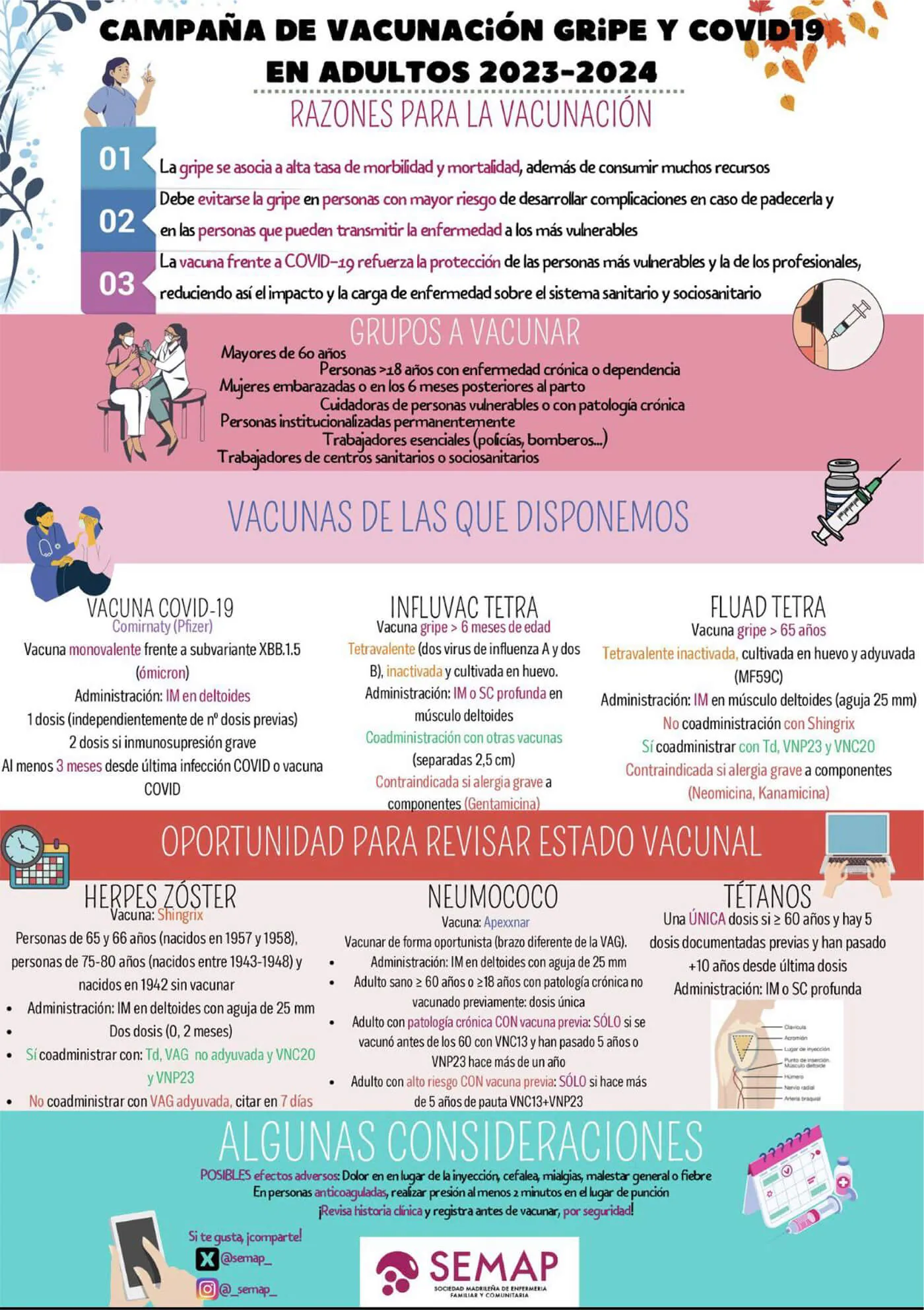 Adjuntamos infografía elaborada por SEMAP (Sociedad Madrileña de Enfermería Familiar y Comunitaria) respecto a la vacunación.
